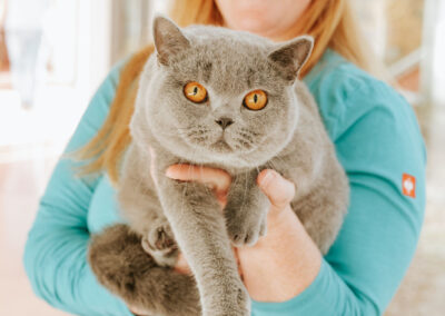 Ein blauer Brite war definitiv nicht geplant in unserer Zucht. Aber als ich Babyfoto’s von Tessa gesehen habe, war ich hin und weg von dieser kleinen Dame und wollte sie in unsere Gruppe aufnehmen.